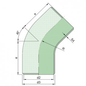 Bogen 45°, entsprechend Rohrtyp D, Form E2, Nennweite DN 100 und Nenndruck PN 10, mit Laminatenden der Form L