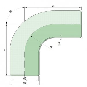 Bogen 90°, entsprechend Rohrtyp D, Form E1, Nennweite DN 100 und Nenndruck PN 10, mit Laminatenden der Form L
