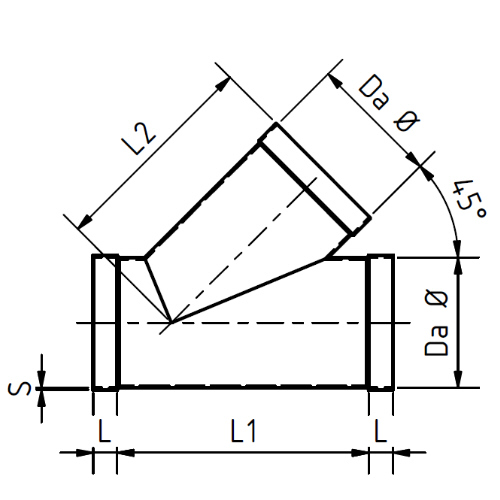 PP T-Stück mit Muffen, Abgang 45°