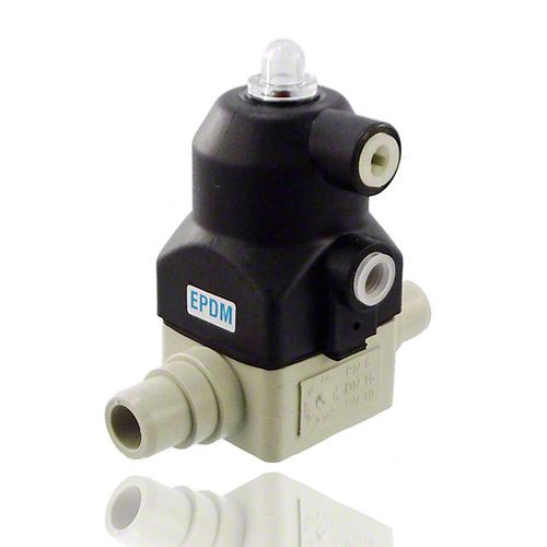 | 2/2-Wege-Membranventil mit pneumatischem Stellantrieb und optischer Stellungsanzeige Gehäusewerkstoff: PP Funktion: normal geschlossen (NC) Membranwerkstoff: wahlweise EPDM - FKM - PTFE/EPDM Steuerdruck: 4 - 7 bar Steueranschluss: R 1/4' Steueranschluss in Durchflussrichtung: auf Anfrage Antriebsfarbe: schwarz Betriebsdruck: einseitig anstehend Anschluss: Schweißstutzen zum Heizelementmuffenschweißen |