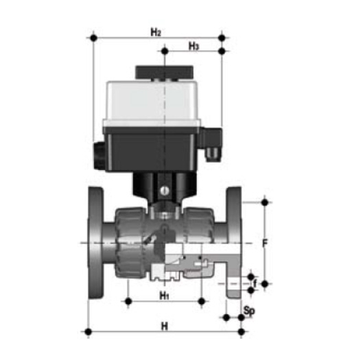 | 2/2-Wege-Kugelhahn mit gesicherten Überwurfmuttern aus PVC-U mit elektrischem Stellantrieb -mit Endlagenrückmeldern, Handnotbetätigung und optischer Stellungsanzeige -Stellantriebsdaten: Standard 90-240V / 50-60Hz (AC), ohne Aufpreis 24V AC/DC -Andere Spannungen auf Anfrage -ANSI Flansche auf Anfrage -***DN50 = PN16 auf Anfrage -Anschluss: Festflansch ISO-DIN aus PVC-U -Dichtung: PTFE/EPDM - ab d 75 mm Anschluss: Festflansch aus PVC-U gebohrt mit ovalen Schraubenlöchern für DIN und ANSI Standards -Dichtung: PTFE/EPDM |
