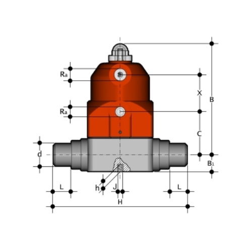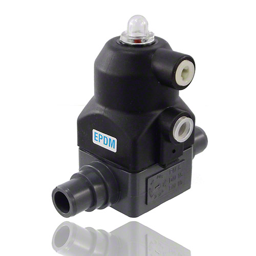 | 2/2-Wege-Membranventil mit pneumatischem Stellantrieb und optischer Stellungsanzeige Gehäusewerkstoff: PVC-U Funktion: normal geöffnet (NO), doppelt wirkend (DA) auf Anfrage Membranwerkstoff: wahlweise EPDM - FKM - PTFE/EPDM Steuerdruck: 5 bar Steueranschluss: R 1/4' Steueranschluss in Durchflussrichtung: auf Anfrage Antriebsfarbe: schwarz Betriebsdruck: einseitig anstehend Anschluss: Klebestutzen |