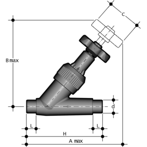 PVC-U Schrägsitzabsperrventil, Klebestutzen, EPDM