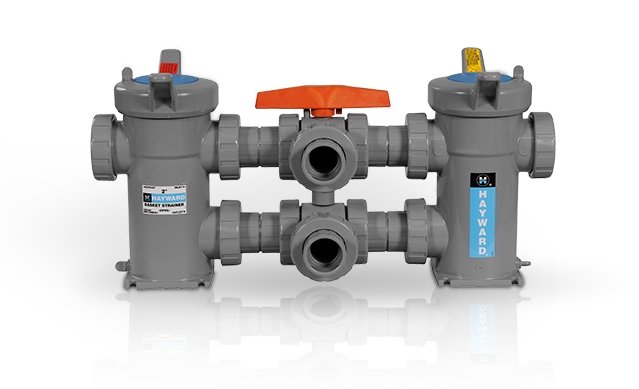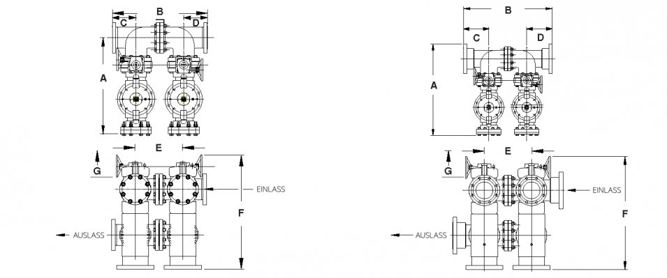 Ist jedoch ein unterbrechungsfreier Betrieb gefordert, d.h. dass die Reinigung des Siebkorbes ohne Unterbrechung des Betriebes möglich sein muss, ist der Einsatz eines Doppel-Schmutzfängers erforderlich. Hierbei handelt es sich um eine Doppelanlage, bei der die beiden Schmutzfänger durch Umschaltung des Kombinationsventils wechselweise betrieben werden können. Dadurch sind die Wartungsintervalle für Kwerk-Schmutzfänger deutlich länger.